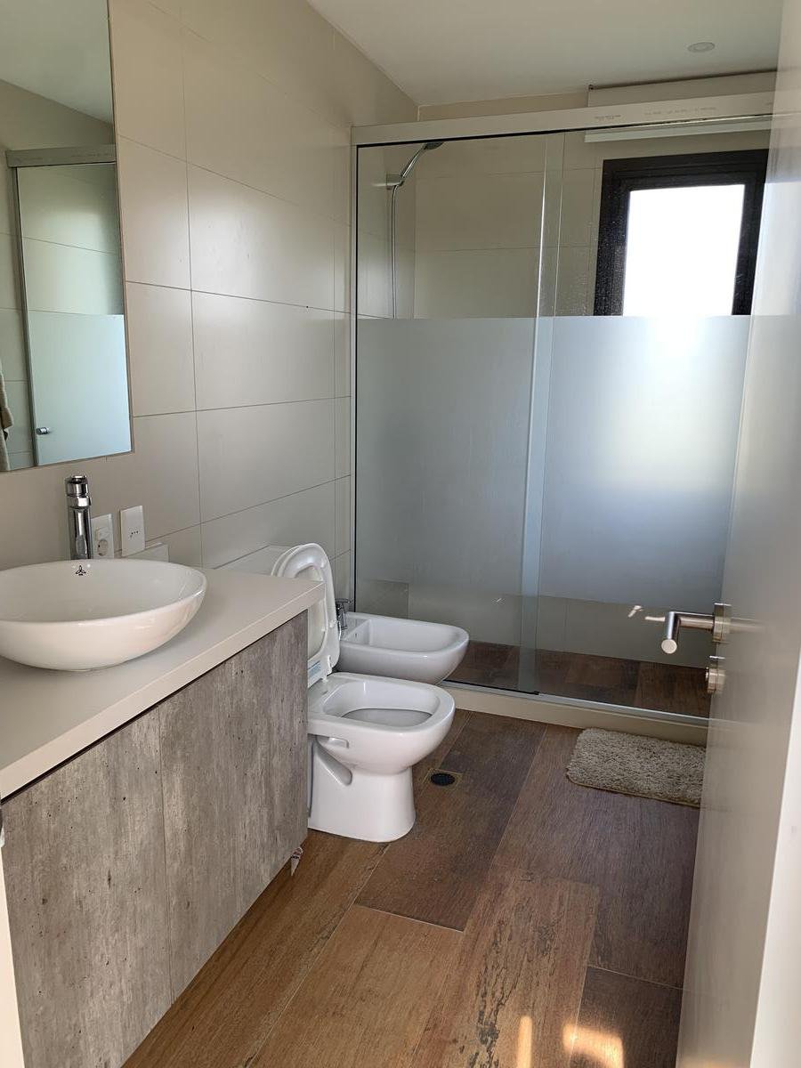 Cuenta con living comedor, 2 dormitorios, 3 baños (1 en suite) y cocina integrada al living.